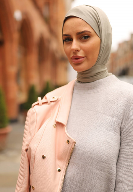 حجاب قطن رمادي فاتح بارد واستريتش يحتوي على قطعة حول الرقبة ..